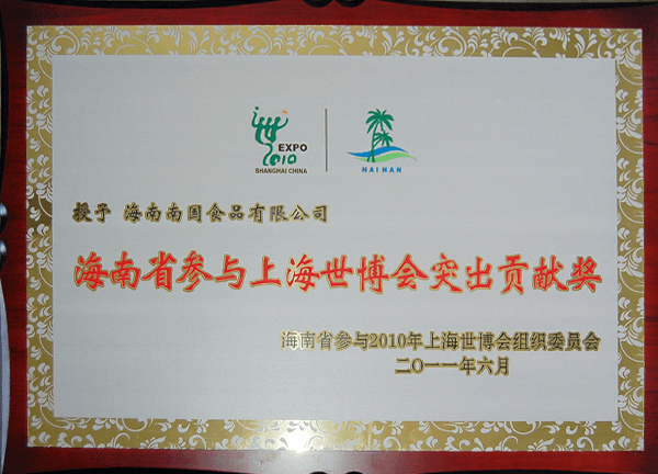 荣获中国2010世博会突出孝顺奖