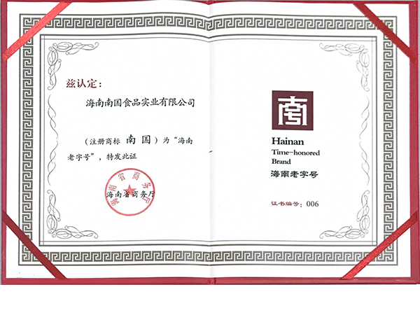 荣获海南老字号称呼