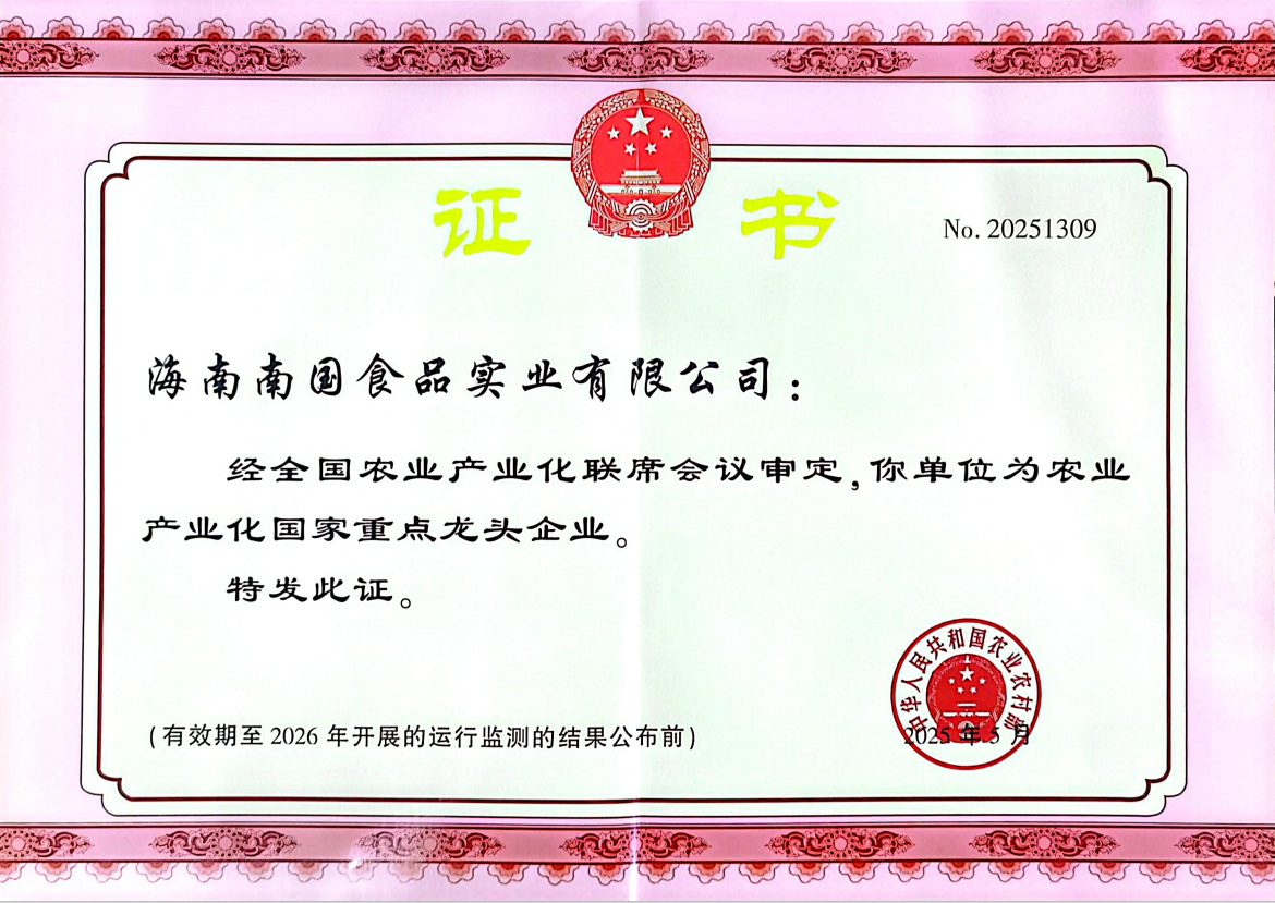 荣获农业工业化国家重点龙头企业