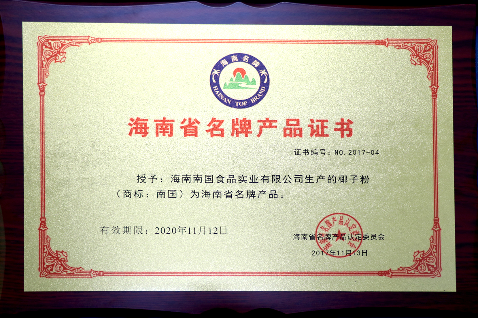 荣获海南省名牌产品