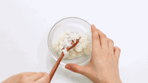 ½«×°ÂúÅ´Ã×·¹µÄСÍëµ¹¿ÛÈëÅÌÖÐ